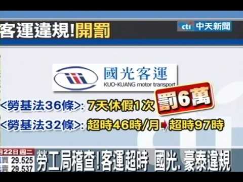 有2家不合格,分別是國光客運及豪泰客運,據了解,國光客運違反勞動基準法第32條及